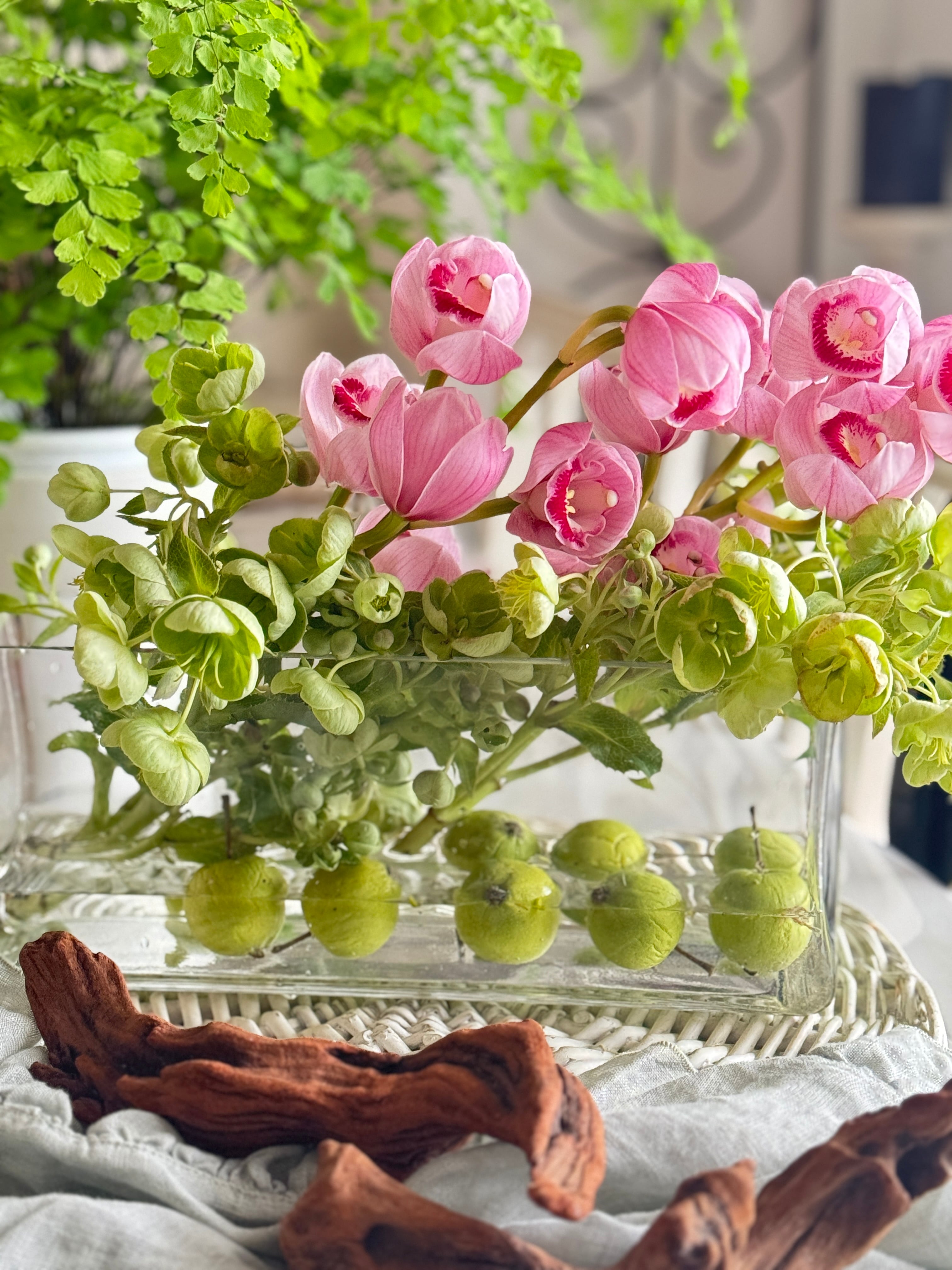 美しいレクタンゴ型の花瓶と季節の花々の組み合わせは、シンプルでありながらも存在感を放つ商品です。ナチュラルなデザインが、どんなインテリアにも馴染み、空間に優雅さとリラックスした雰囲気をもたらします。