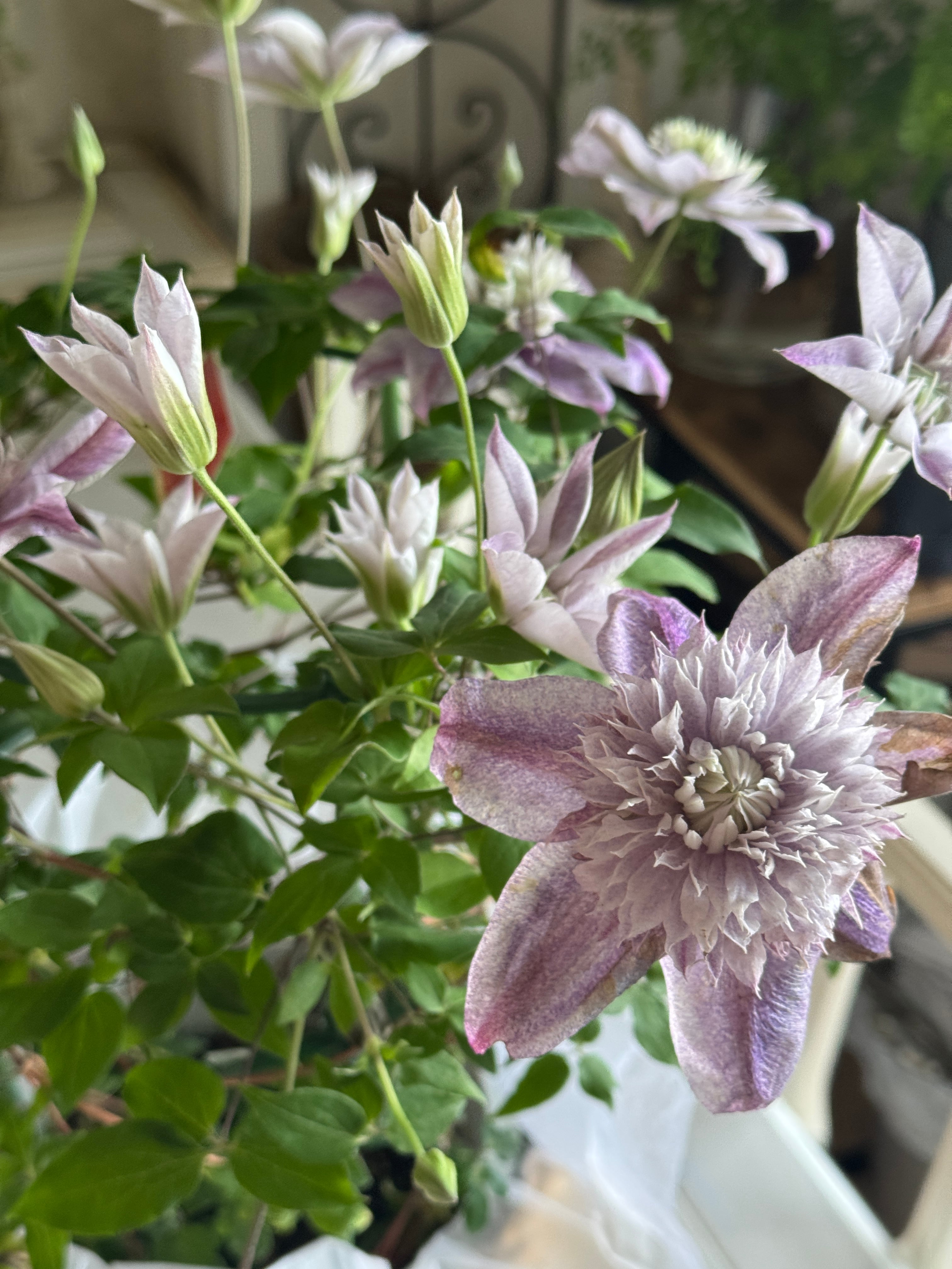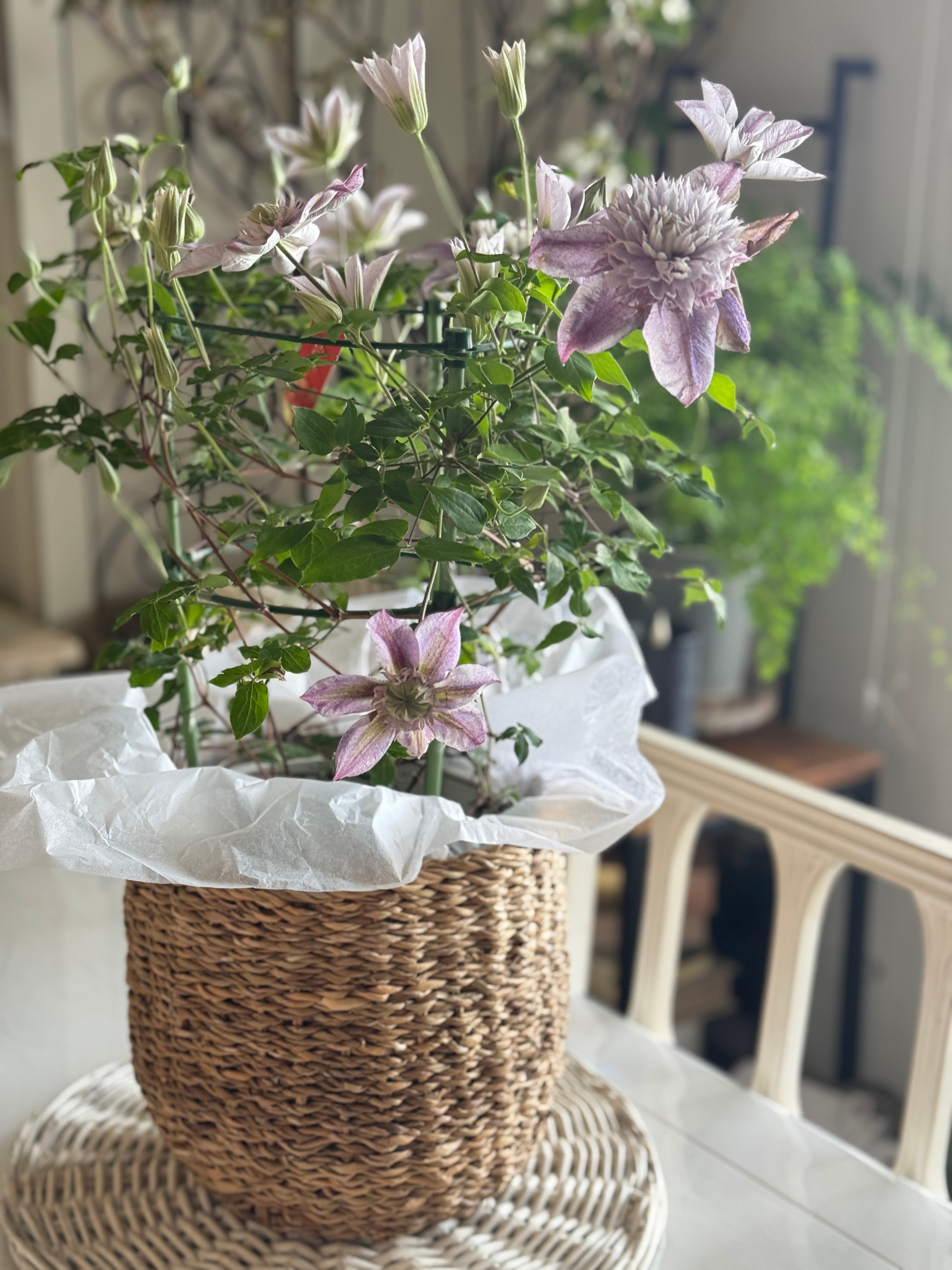 クレマチス 淡いパープル 鉢カバー付き